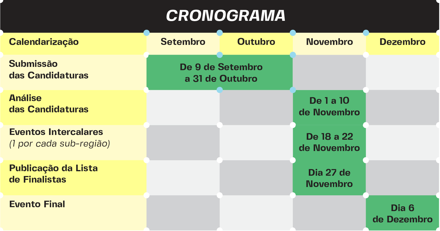 A inscrição e submissão de ideias deverá ser realizada entre os dias 9 de setembro e 31 de outubro de 2019, através de um dos formulários que podes encontrar nesta página.